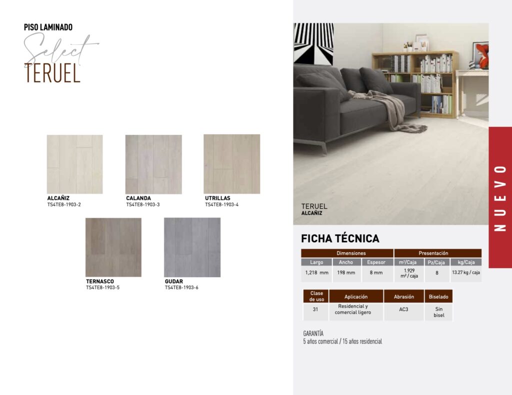 El piso laminado Teknostep Teruel de 8mm es una elección duradera y elegante para interiores. Con su diseño que imita la madera y un espesor de 8mm, es resistente al desgaste. La garantía de 5 años respalda su calidad, brindando confianza a los compradores en su durabilidad y estilo.